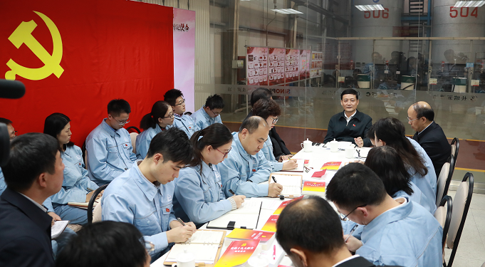 在全自動(dòng)調(diào)合車間的班組學(xué)習(xí)室,肖亞慶和來自基層黨支部的黨員同志圍坐在一起,結(jié)合自己參加大會(huì)的切身感受和學(xué)習(xí)黨的十九大報(bào)告的心得體會(huì),宣講黨的十九大精神。座談會(huì)上,6位黨員代表分別結(jié)合自身工作實(shí)際談學(xué)習(xí)體會(huì),其他同志也積極發(fā)言,肖亞慶邊聽邊記,不時(shí)詢問情況、作出解答,現(xiàn)場(chǎng)氣氛十分熱烈。肖亞慶說,跟同志們深入交流后很受啟發(fā)、很有收獲。黨的十九大取得了一系列重大成果,提出了一系列重大科學(xué)論斷,明確了一系列重大戰(zhàn)略舉措,把黨的十九大精神學(xué)習(xí)好、貫徹好、落實(shí)好是當(dāng)前和今后一個(gè)時(shí)期首要的政治任務(wù)。中國(guó)石化黨組認(rèn)真貫徹黨中央部署和國(guó)資委要求,采取多種形式推進(jìn)黨的十九大精神進(jìn)基層、到一線,取得了很好的效果。