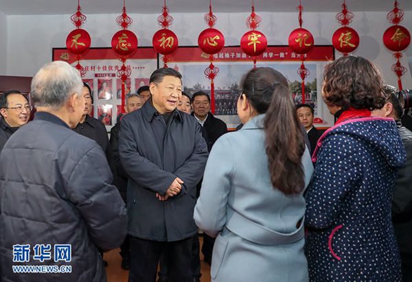 之后,習近平又來到附近的潘安湖街道馬莊村考察。在村史館,習近平看圖片、看資料、看實物,肯定該村從單純以煤為生轉型到多種產業(yè)共同發(fā)展的經驗,指出發(fā)展特色產業(yè)、特色經濟是加快推進農業(yè)農村現(xiàn)代化的重要舉措,要因地制宜抓好謀劃和落實。在黨員活動室,習近平走進正在學習黨的十九大精神的黨員中間,聽他們談學習體會,看他們的學習筆記,問他們感受最深的是什么、有什么意見和建議,希望他們在學習貫徹黨的十九大精神中發(fā)揮積極作用。他指出,農村基層黨組織是農村各個組織和各項工作的領導核心,要強化農村基層黨組織職能,把農村基層黨組織建設成為宣傳黨的主張、貫徹黨的決定、領導基層治理、團結動員群眾、推動改革發(fā)展的堅強戰(zhàn)斗堡壘。