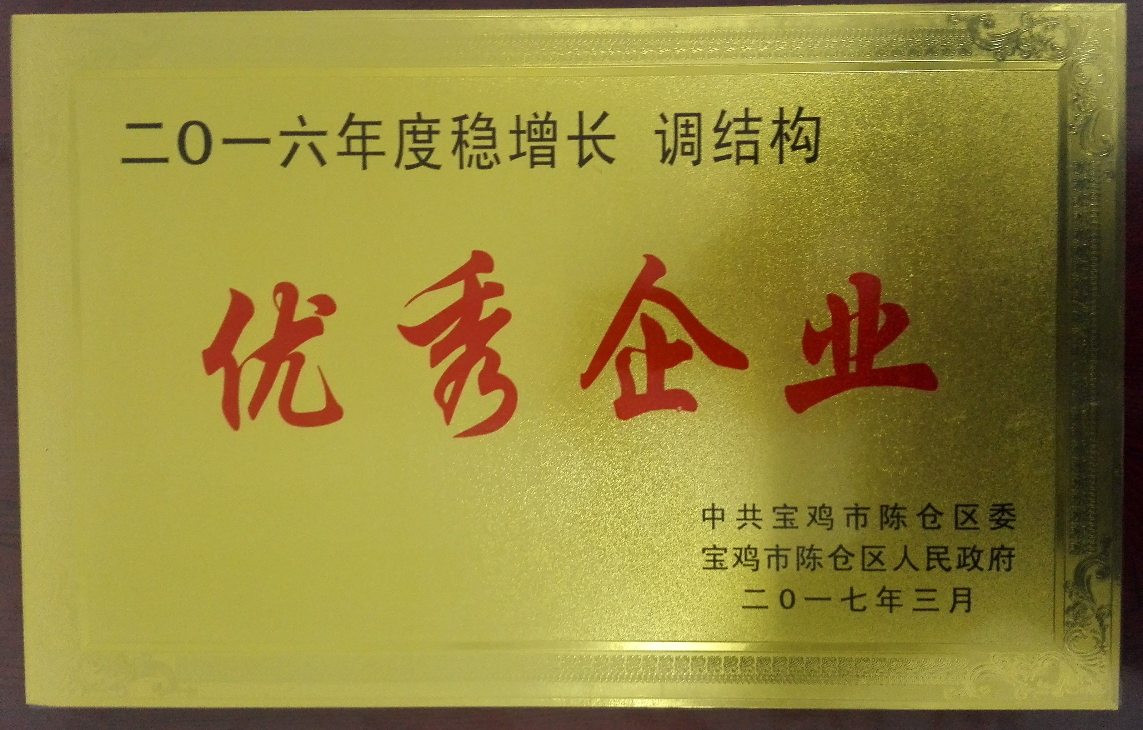3月15日,我公司榮獲寶雞市陳倉(cāng)區(qū)“2016年度工業(yè)穩(wěn)增長(zhǎng)、調(diào)結(jié)構(gòu)優(yōu)秀企業(yè)”。