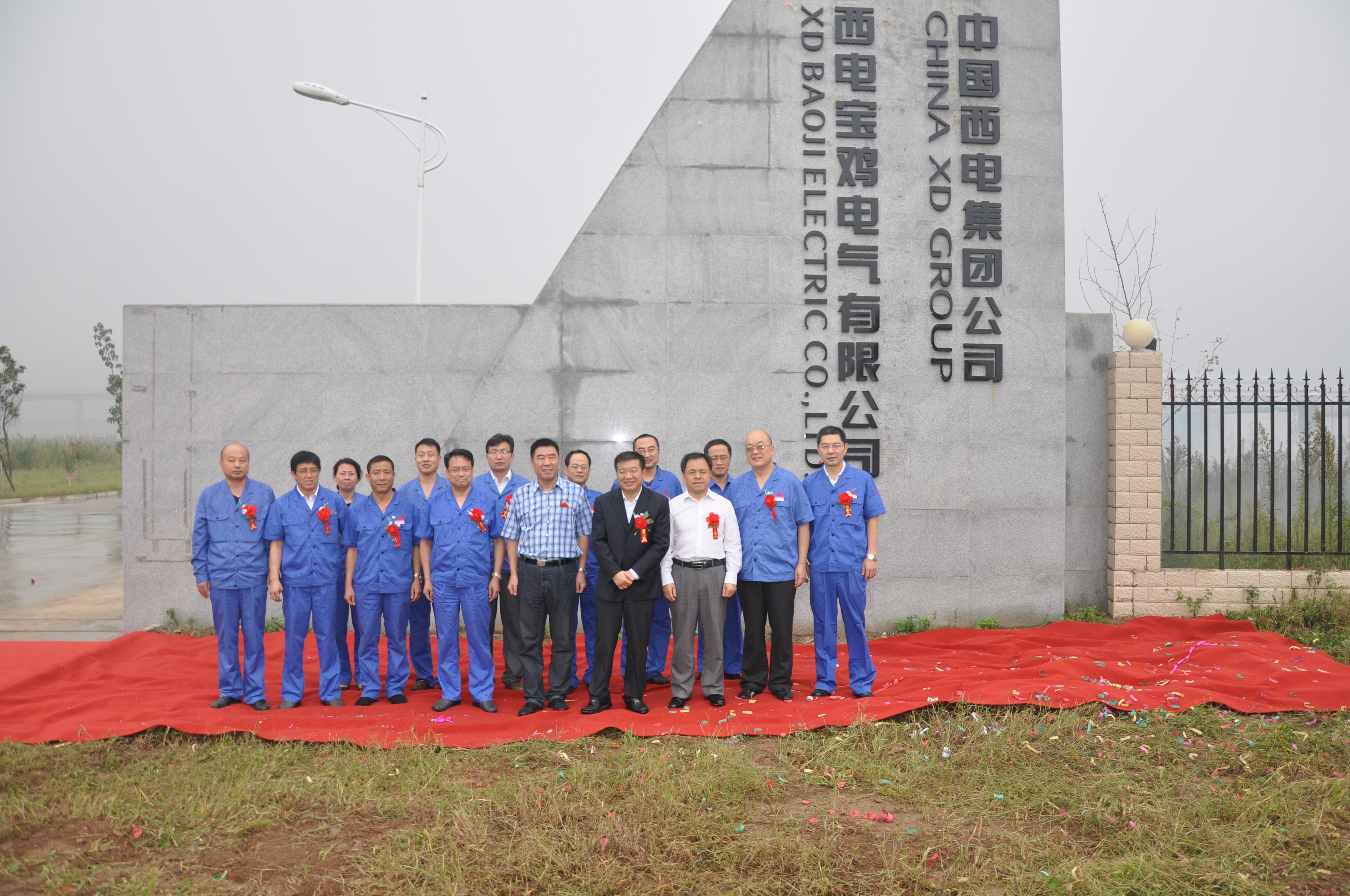 會(huì)議結(jié)束時(shí),與會(huì)同志歡聚在公司大門口,在熱烈的掌聲和鞭炮聲中,集團(tuán)公司總經(jīng)理張雅林和西電寶雞電氣執(zhí)行董事雒濤共同為西電寶雞電氣有限公司揭牌。