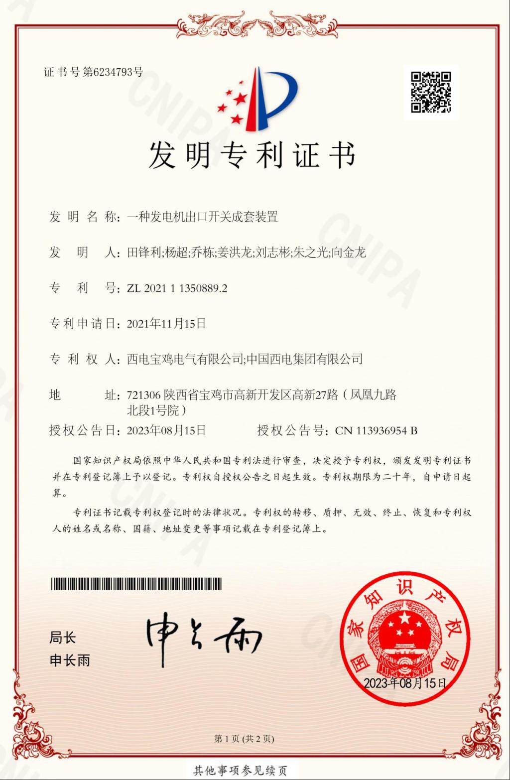日前,由西電寶雞電氣自主研發(fā)的“一種發(fā)電機出口開關成套裝置”的發(fā)明專利,順利通過國家知識產(chǎn)權局審查,并獲得國家發(fā)明專利授權,這是西電寶雞電氣完全自主研發(fā)獲得的首個專利,成為西電寶雞電氣科技創(chuàng)新能力發(fā)展的又一重要里程碑,標志著向科技強企邁出扎實的一步。
