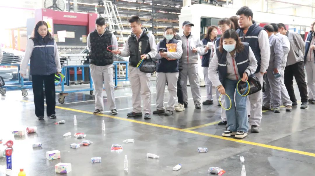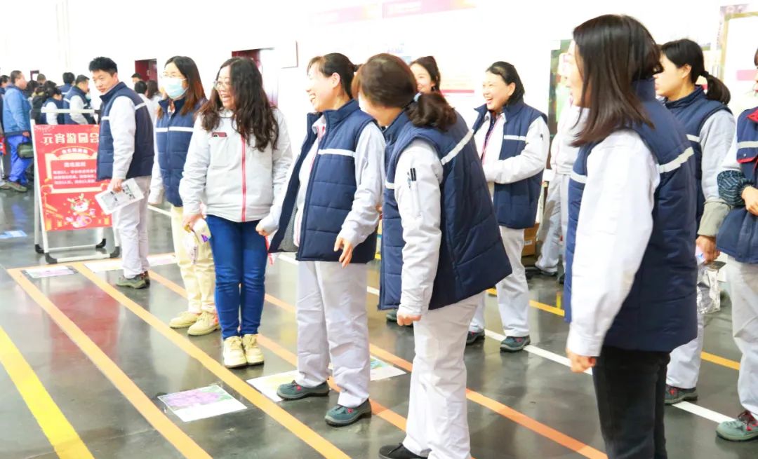 “快樂跳跳”游戲,一組五人按照指令跳到指定區(qū)域,職工們紛紛使出渾身解數(shù)完成規(guī)定的游戲目標(biāo),隨著指令越來越快,大家伙著急的動(dòng)作讓在場(chǎng)的觀眾忍俊不禁。